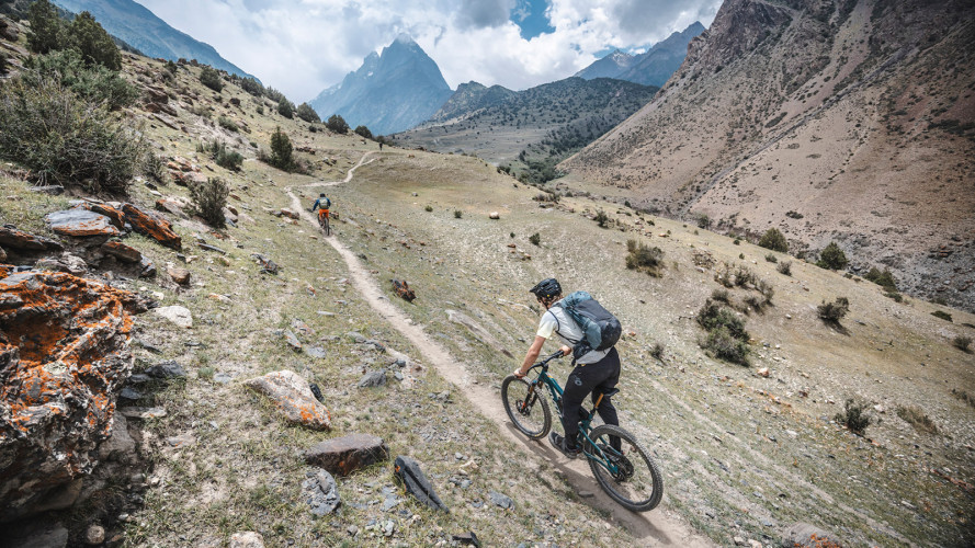 In der Turkestan Range, tief im Grenzgebiet zwischen Kirgistan und Tadschikistan, verbirgt sich eine Region, die hierzulande nahezu unbekannt ist. Unter Kletterern genießt sie aufgrund ihrer gewaltigen, steilen Granitwände bereits einen legendären Ruf als das „Patagonien Asiens“. Doch für Mountainbiker sind die einsamen Täler bis heute ein weißer Fleck auf der Landkarte.