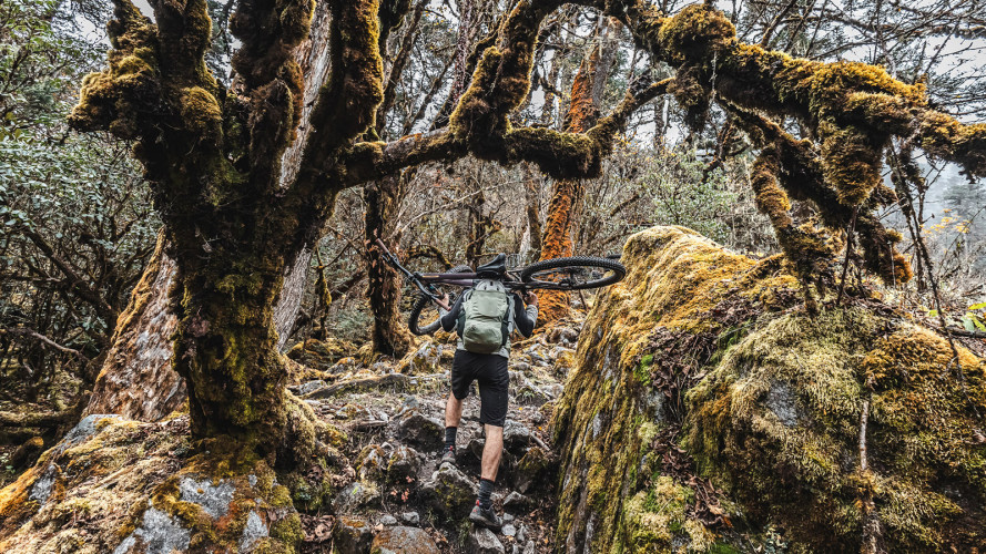 Im Osten Nepals, direkt an der Grenze zum indischen Bundesstaat Sikkim, thront der Kangchendzönga. Sein Name stammt aus dem Tibetischen und bedeutet ehrfürchtig „die fünf Schatzkammern des großen Schnees“. Dass der Schnee hier nicht nur ein Name, sondern ein unerbittlicher Teil der Realität ist, durfte Gerhard auf der Mountainbike-Expedition in die steilen, von dichtem Bergurwald bewachsenen Täler am Fuße dieses Giganten am eigenen Leib erfahren.