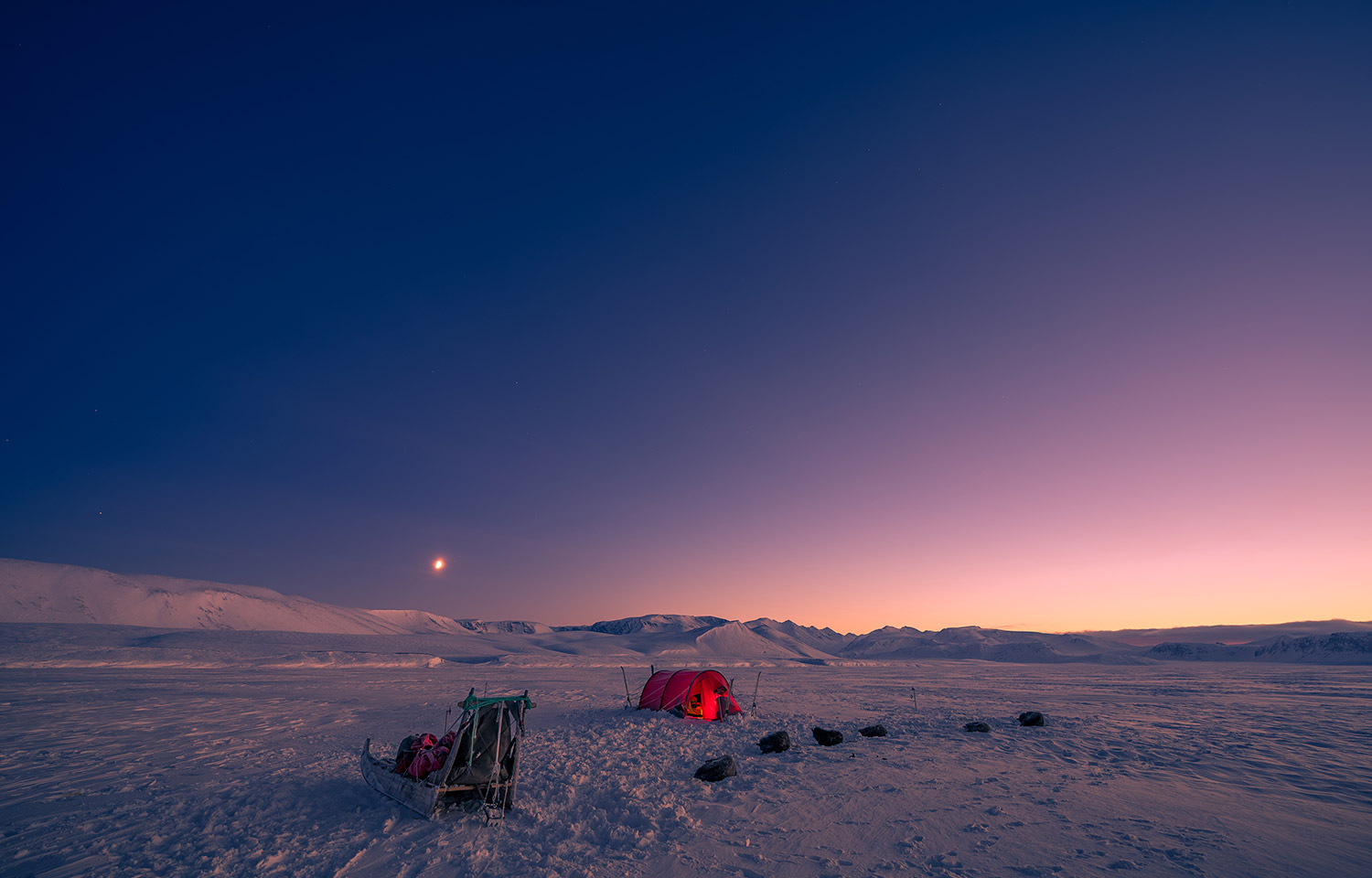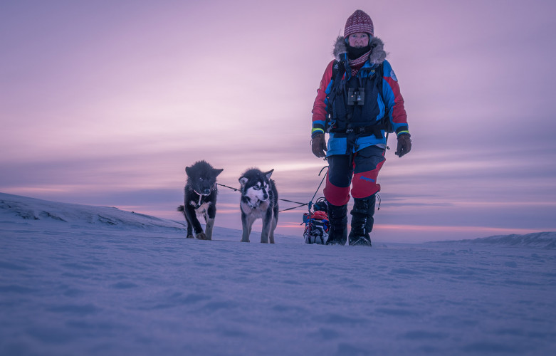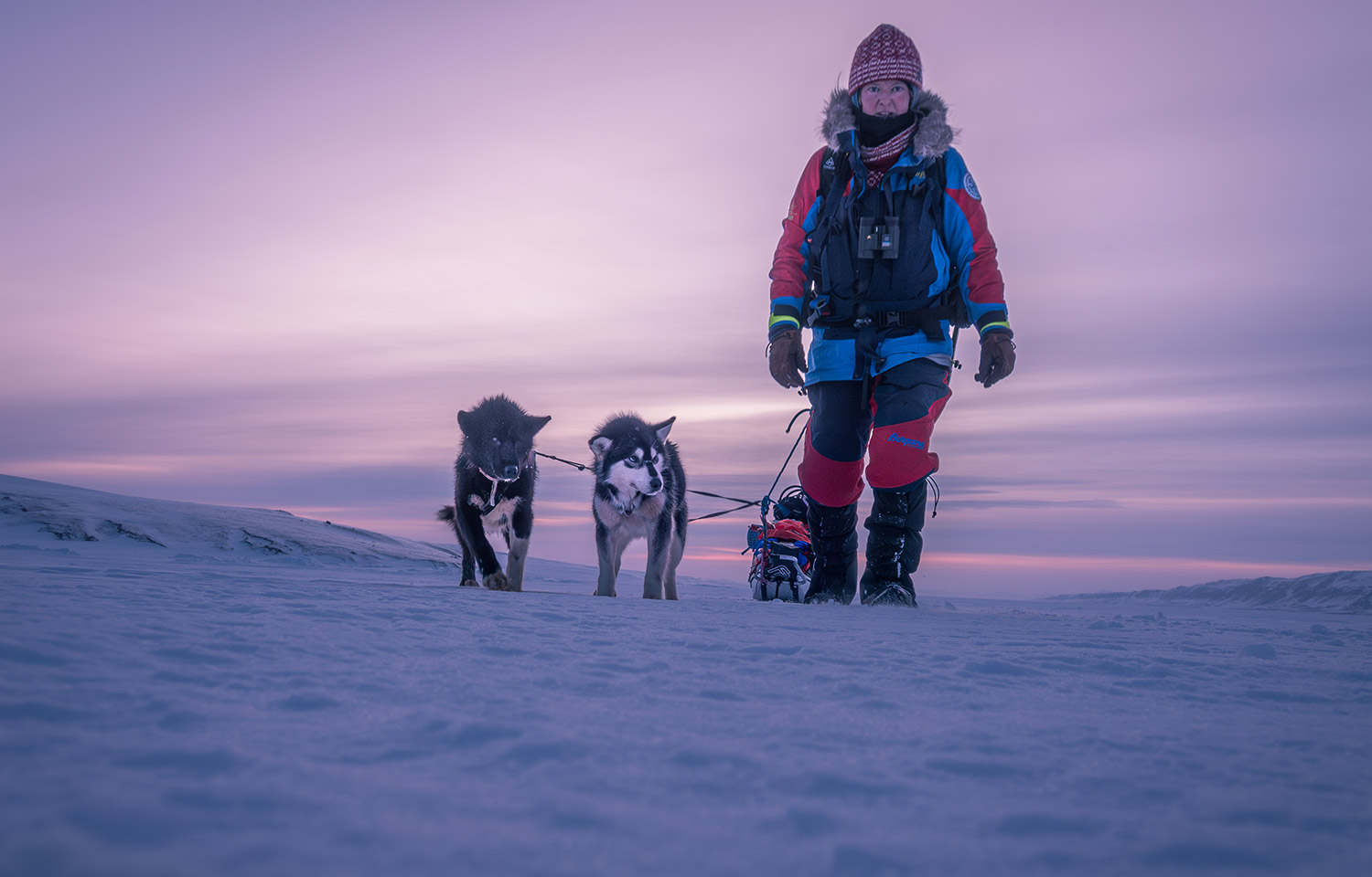 In den eisigen Wintern lernt Jolanda von einheimischen Jägern, mit Schlittenhunden loszuziehen. Zunächst mit zwei Hunden, hauptsächlich zum Schutz vor Eisbären. Aber schließlich ist es ihr großer Traum, mit einem ganzen Rudel unterwegs zu sein. Nicht um irgendwo anzukommen, sondern vor allem, um mit diesen Tieren in der arktischen Landschaft zu Hause zu sein. Unter dem magischen Nordlicht im Reich der Eisbären zu zelten.
